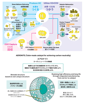 Using this carrier, it produces and sells catalysts under the AERONITE® trademark that generate e-methane and synthetic fuels (carbon-neutral fuels) from carbon dioxide and hydrogen.