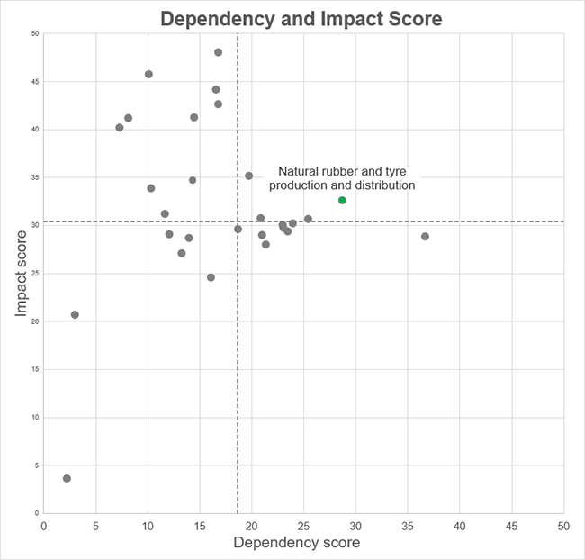 The results of our assessment of the dependence and impact of the natural rubber business on each of the business processes indicate that the procurement (natural rubber cultivation) and manufacturing (rubber processing) processes are particularly dependent on the natural capital. Therefore, in this analysis, we focused on these two processes.
