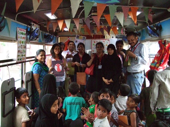 ITOCHU Corporation and Save the Children, an international non-governmental organization for supporting children, has launched the Mobile Learning Centre Project in Mumbai, India, for about 1,000 children including street children and those involved in child labor. The project is aimed at helping children to reconnect to and cope with mainstream schooling, and a total of 20 million yen will be donated to support the project in the coming two years. The bus used as the Mobile Learning Centre is wrapped with pictures. It is furnished with benches and blackboard and equipped with a small library so that it will look like a real school classroom. Two education facilitators and a counselor have been assigned to the mobile classroom, where children are given opportunities to enjoy learning with educational materials including audio and video.