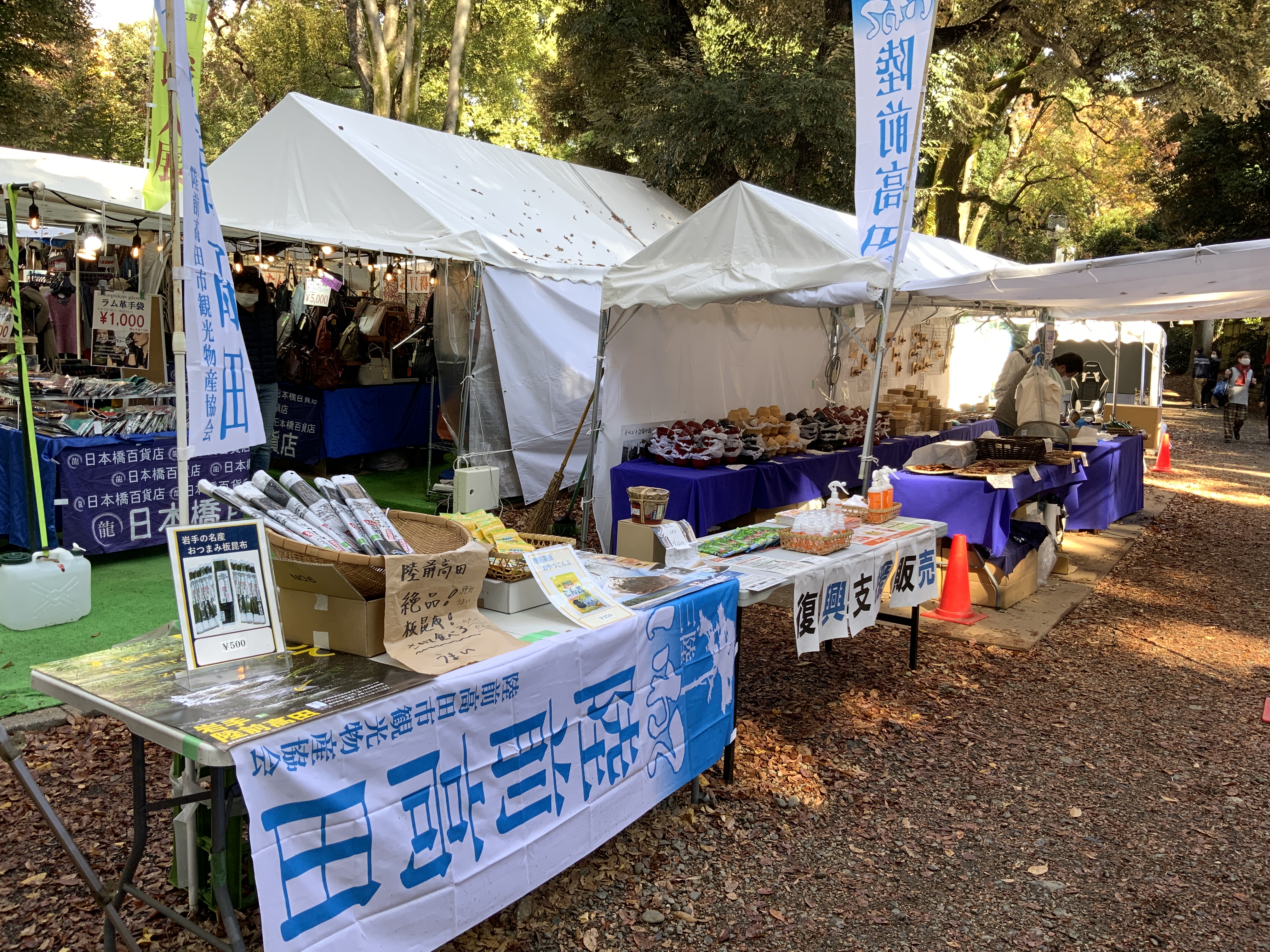 The Kizuna no Mori: Forest Craftsmen Exhibition was held in Meiji Jingu Gaien from November 20 (Fri) to December 6 (Sun) as contribution to the community and earthquake recovery assistance. ITOCHU collaborates with Meiji Jingu Gaien at various events including a baseball class for people with disabilities every year. We participated in this event by showcasing Iwate Prefecture’s Rikuzentakata and Shiga Prefecture. This event was held at a time when opportunities to sell special products have decreased due to the COVID-19 crisis. Rikuzentakata sold its kelp and other special products while Shiga Prefecture distributed samples of tea from what is called the birthplace of Japanese tea Ohmi. Both were well received by and delighted the visitors.