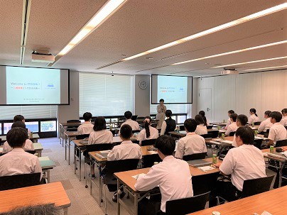 On July 23, ITOCHU hosted 28 students from the first through third grades of Hachiman Commercial Senior High School as part of the corporate training program within the school’s “Ohmi Merchants Revival Project.” The Project is an initiative of Hachiman Commercial Senior High School, which is known as the "Officer School of Ohmi Merchants," to train students in the spirit of Omi Merchants and commercial law in a practical manner, with the aim of developing human resources who will be active in the world in the future.