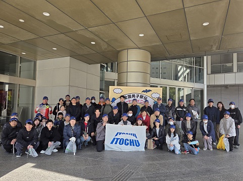 On Sunday, January 18th, the companies and organizations of Corporate Social Contribution Activity Research Group collaborated to carry out Hiroshima Men's Ekiden cheer and cleanup volunteer. A total of 46 people from 15 companies, including ITOCHU Corporation and its group companies, participated in the cleanup around Peace Memorial Park. As for the results of the Ekiden, Miyagi Prefecture team claimed their first victory, while Hiroshima Prefecture team performed well, finishing in 13th place.