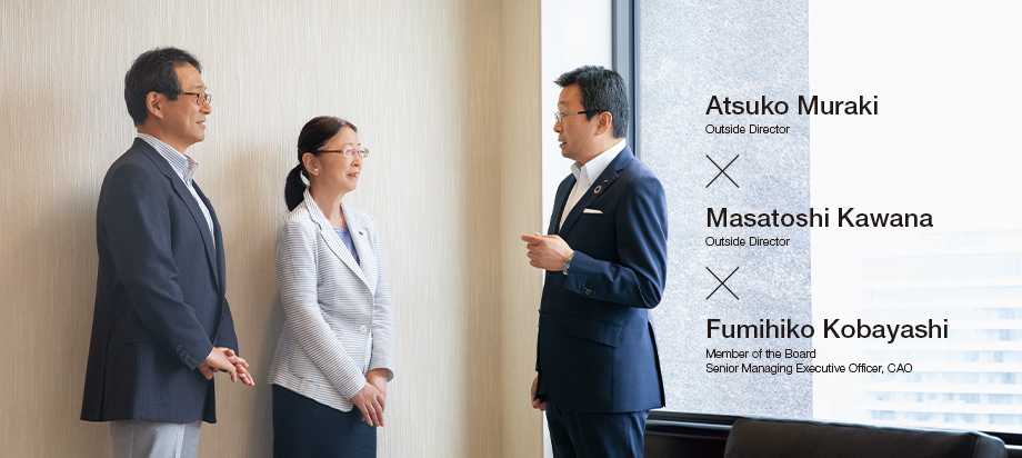We asked CAO Fumihiko Kobayashi and outside Directors Atsuko Muraki and Masatoshi Kawana about key issues facing ITOCHU in its pursuit of sustainable growth, particularly in terms of human resource strategy.