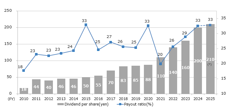 * Dividend per Share FY 2025: ¥210.0 (pre-split basis) (Minimum)