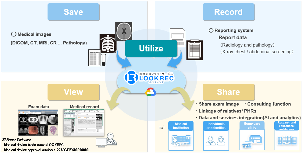 MNES is a pioneer in providing unique services to medical institutions with a complete cloud-based format, with a dedicated development system for Google Cloud.* Its flagship product, LOOKREC, is a cloud service that enables physicians and medical professionals to manage and share real-time medical images such as CT, MRI and other medical images taken by professional equipment, with no limit on storage capacity, aiming to achieve remote team medicine that is easily operated and low at cost.