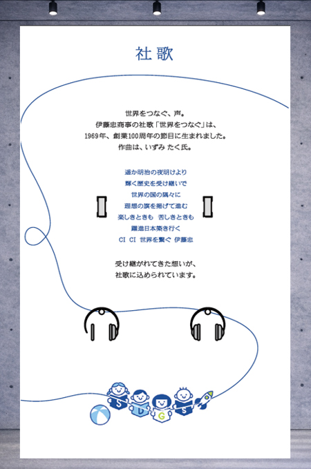 かつて伊藤忠社員の士気を高めた社歌「世界をつなぐ」を視聴できるブースをご用意しました。
