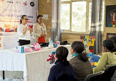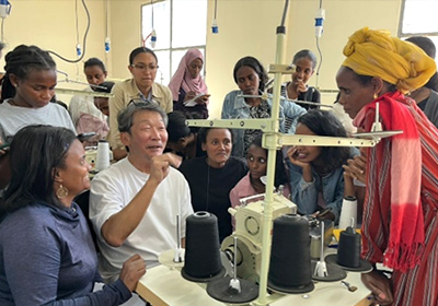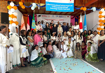 2025年4月、2023年度にUNIDO(国連工業開発機関)の助成を受け、伊藤忠商事繊維カンパニーインナー課とアディスアベバ事務所で、現地最大の職業訓練校NGO「Selam Children Village」に生理用ショーツの縫製指導を実施しました。114名の生徒が指導受け、訓練終了式には大使館とともに登壇。本プロジェクトはUNIDOより「Gender Best Practice of UNIDO」に選出されました。