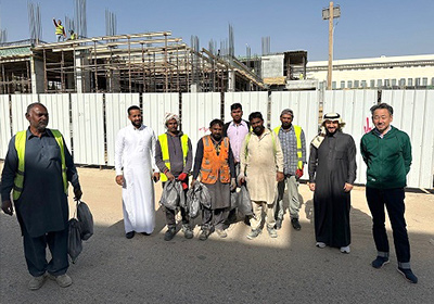 リヤド事務所近くの建設現場や清掃作業に従事する、困難な状況にある労働者の方々に対し、冬用アイテムが入ったバッグを70個配布しました。各バッグには、手袋、帽子、スカーフ、靴下が入っており、この取組みを通じて、生活に困難を抱える方々が寒い季節を少しでも快適に過ごせるよう、温かさと安心を届けることができました。
