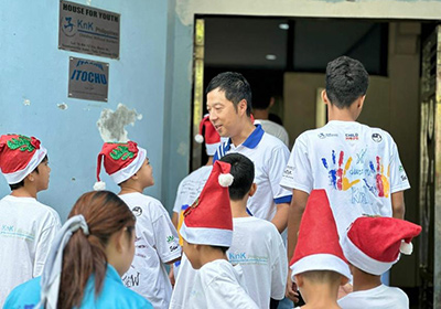 マニラ郊外にある「国境なき子どもたち(KnK)」の青少年自立支援施設が伊藤忠商事の支援で2009年にリニューアルオープンしたことから、マニラ支店では当施設でのクリスマスパーティー参加交流などの活動を継続的に行っています。2025年は12月5日にクリスマスプレゼント(食料や衣服等)の贈呈のために3名で訪問し、支援施設で暮らす子どもたちとの交流を行いました。