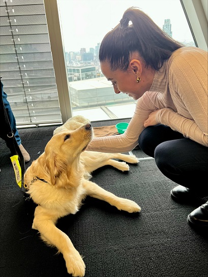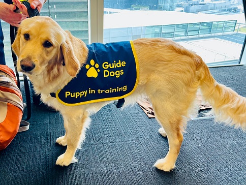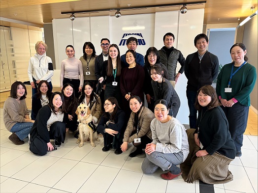 伊藤忠欧州会社では、2022年より英国盲導犬協会の「Name a Puppy」を通じ、盲導犬候補となる子犬に名前を付け、育成支援をしています。2025年2月、社内公募によって「YUME」と名付けられた子犬が、産まれてから初めて欧州会社を訪問してくれました。たくさんのスタッフが集まり、約8か月になるYUMEの訪問を楽しみました。1歳になると訓練をスタートするYUME、無事に盲導犬になれるよう引き続きサポートをしていきます。
