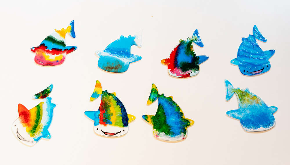 色付けに使ったのは、車のフロントガラスの製造過程で出る廃材でできた絵の具です。ディンプルアーティスト岩本李菜さんを講師に迎え、SDGsの17色の絵の具を使ってみなさんで協力しながらジンベエザメの命が新たに紡がれました。